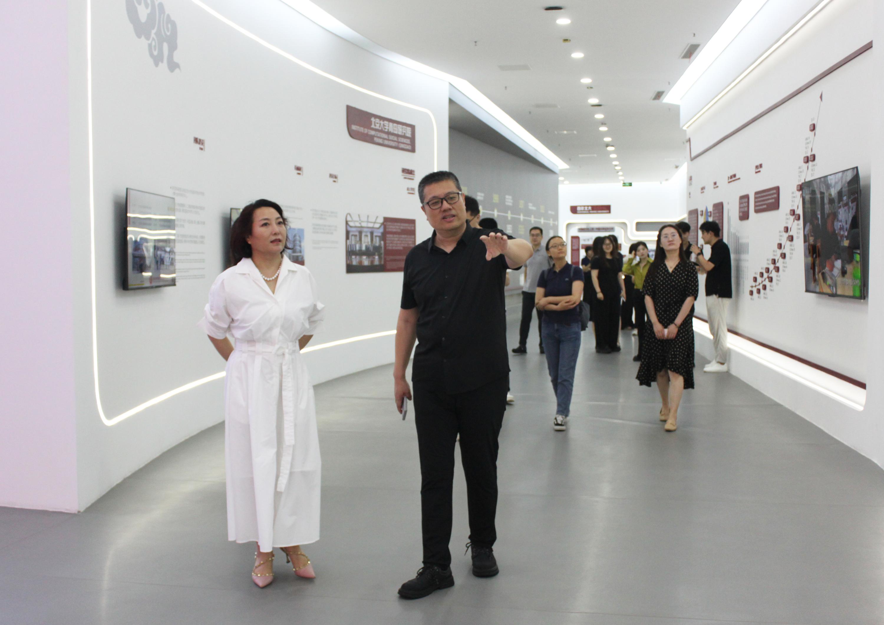 7月27日上午,北京大学城市软实力研究院院长、北京大学经济学院教授许云霄一行19人到北京大学(青岛)计算社会科学研究院参观交流。北京大学青岛研究院院长王腾蛟,副院长陈薇、姚佳慧陪同参观并出席交流座谈。双方围绕联合开展科研成果转化、人工智能技术赋能城市软实力提升等议题展开深入交流。