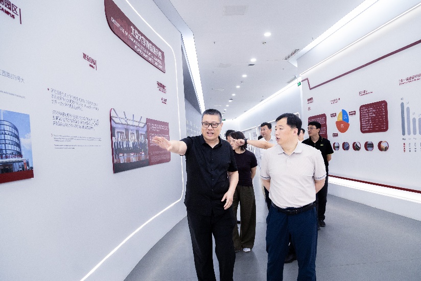 调研组来到科技展厅,实地了解研究院发展历程、技术创新,以及在服务国家重要任务、助力地方经济发展和产业升级等方面取得的重要进展,听取了研究院大数据及人工智能技术在经济运行分析、智能金融、智能政务等多个领域应用情况的汇报。