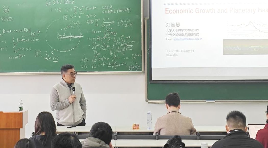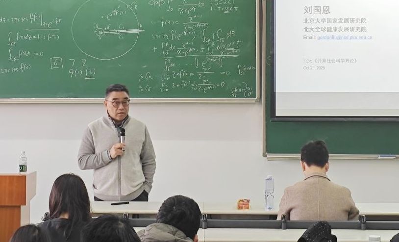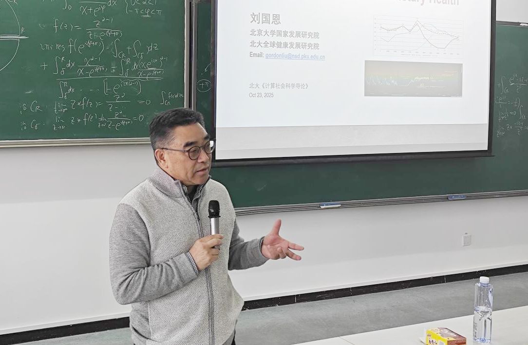 2025年10月23日,名师讲座第四讲正式开讲。讲座由计算社会科学交叉能力提升证书项目负责人王腾蛟主持,北京大学国家发展研究院博雅特聘教授、北京大学全球健康发展研究院院长、北京大学中国卫生经济研究中心主任、北京大学教育经济研究所学术委员会主任、中国医学科学院学部委员刘国恩教授以“经济增长与星球健康”为主题做了精彩报告。