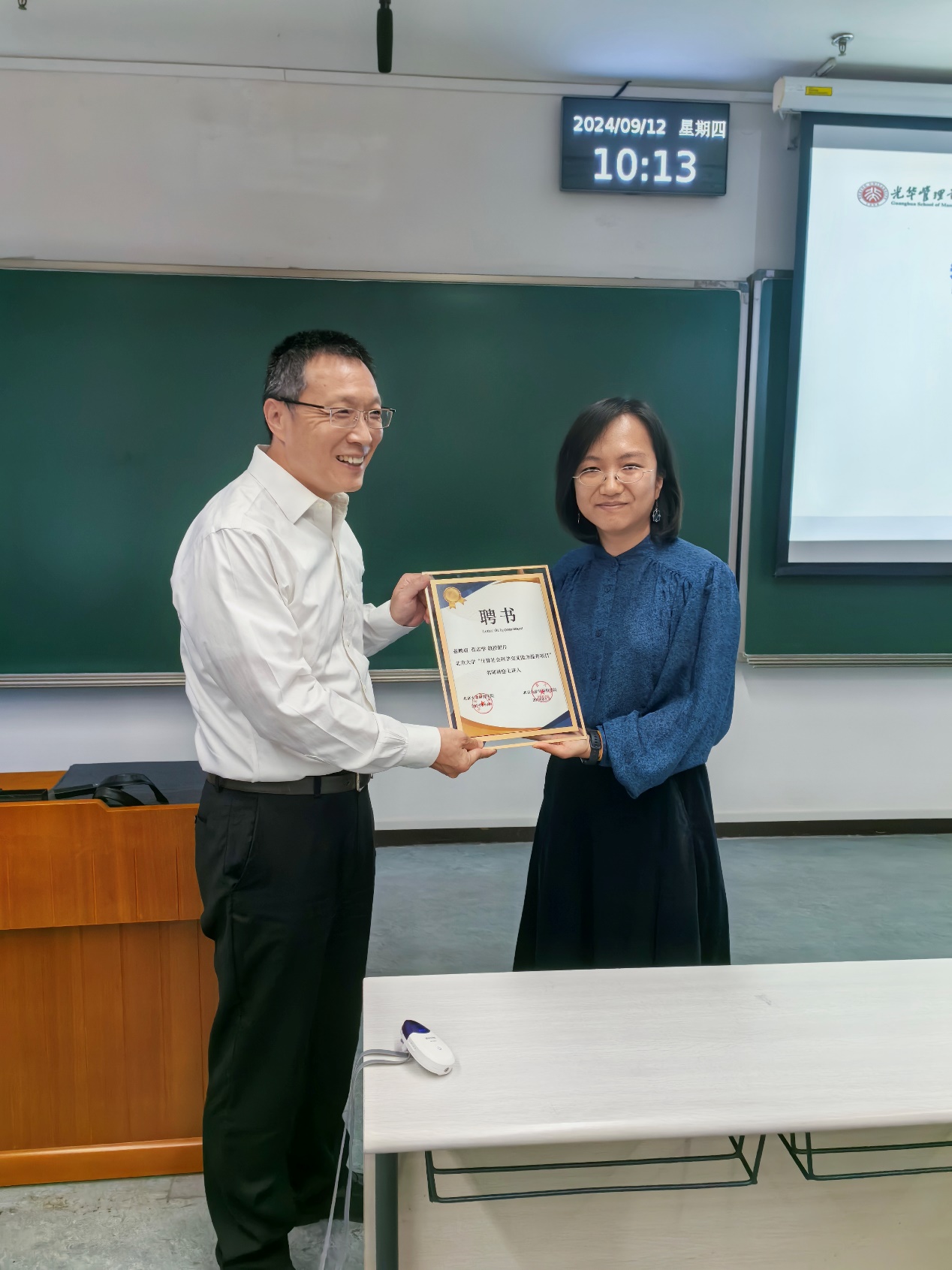 研究生院专业学位办公室副主任常铖主持了讲座,并为张志学教授颁发“计算社会科学交叉能力提升项目名师讲座”主讲人聘书。