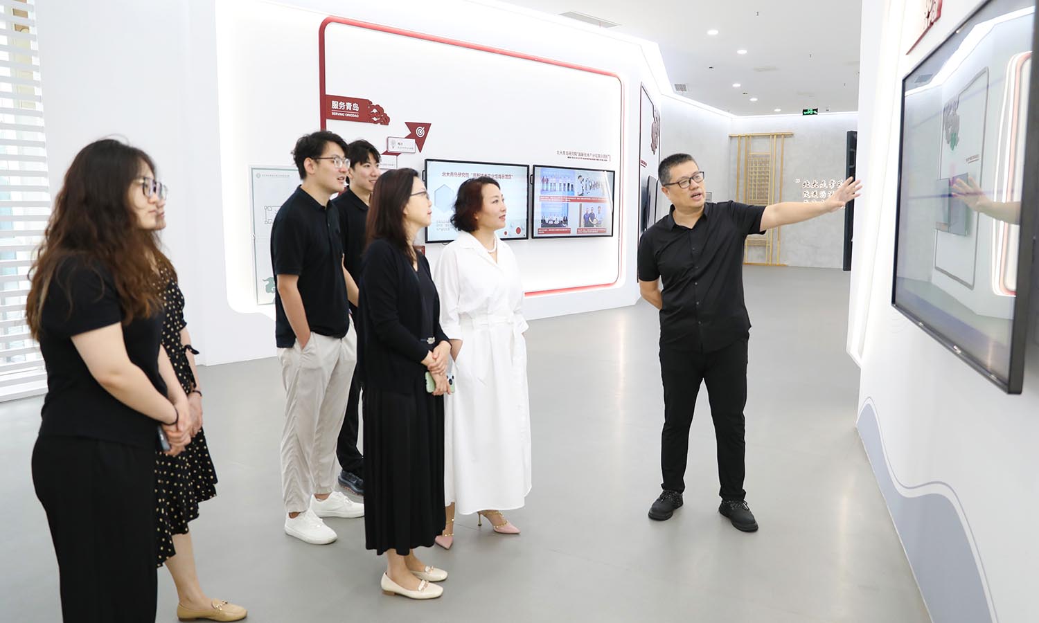 许云霄一行参观了青岛研究院科研办公场所及科技展厅,详细了解了青岛研究院在服务国家、科研与成果转化、服务青岛政务与经济发展等方面取得的重要进展。许云霄介绍了北京大学城市软实力研究院的成立背景、团队成员及目前取得的重要成果。