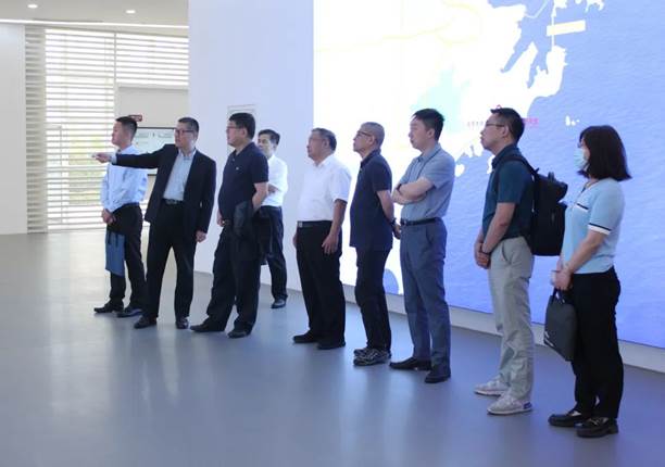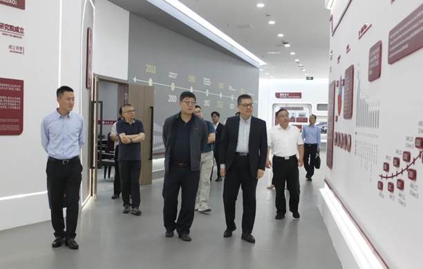 在科技展厅,北大青岛研究院院长王腾蛟向梅建平副司长一行介绍了研究院在大数据和人工智能领域的技术创新和服务中央与青岛的情况。