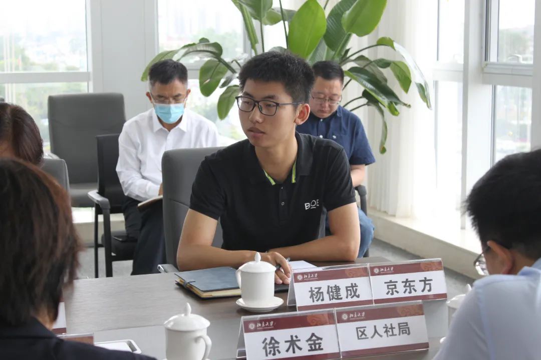 会议由青岛西海岸新区政协主席逯鹰主持。青岛西海岸新区政协副主席刘春花、秘书长韩廷义,青岛西海岸新区招才中心主任张海舰,青岛西海岸新区人力资源和社会保障局副局长徐术金,青岛京东方光电科技有限公司人事经理杨健成,北大青岛研究院院长王腾蛟、联合实验室主任朱晓琳、院长助理曲晓燕参加座谈。参会各方围绕运用大数据技术实现人力资源市场供求双方精准匹配进行洽谈交流。