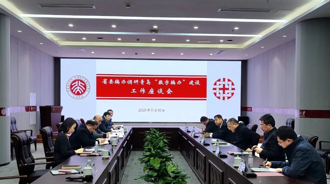 11月10日,山东省委组织部副部长、编办主任高尚山一行来到北京大学(青岛)计算社会科学研究院,在青岛市委编办主任逯鹰的陪同下,调研青岛市委编办与我院共同开展的“政府职能运行智能评估”示范系统建设进展并进行座谈。